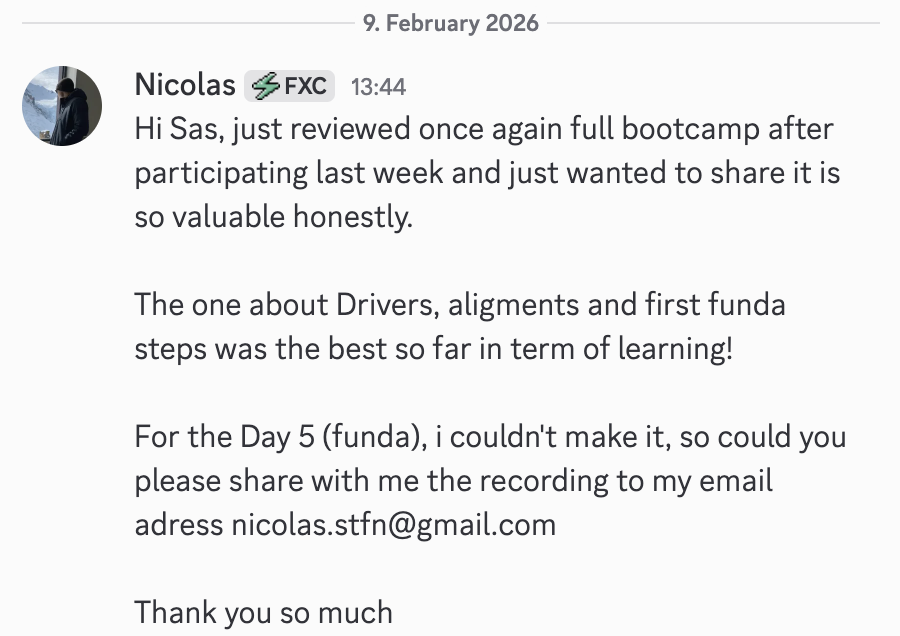 Many described the bootcamp as the moment where things “clicked”, not because of a new indicator, but because the process finally made sense.