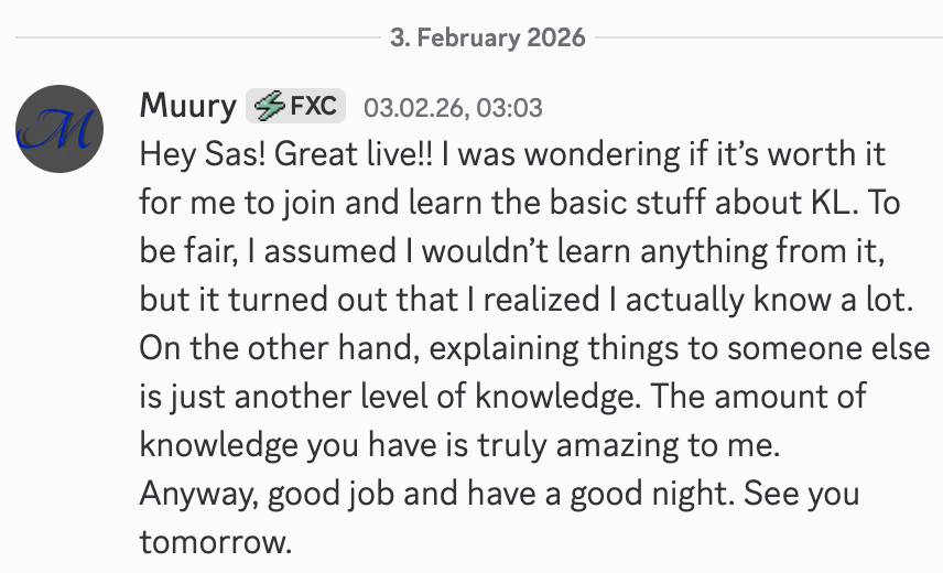 FXC Academy continues this level of structure and support inside our Silver and Gold Memberships, where education, live charting, community, and accountability come together.